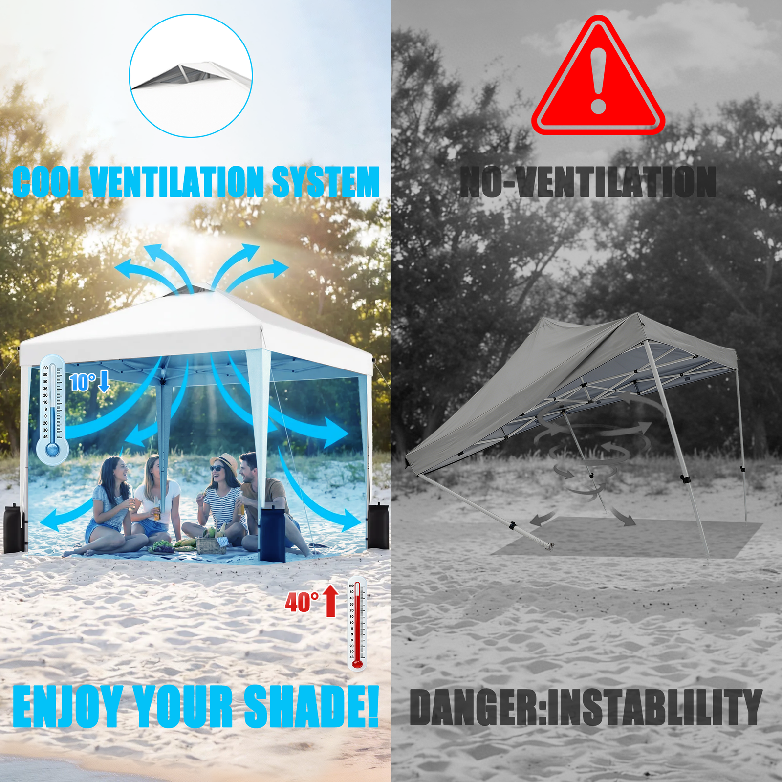 / SANWAY 10×10 Pop Up Canopy Tent, One Push Setup, Heavy Duty Portable for Beach Camping Parties with Vents – Silver White
