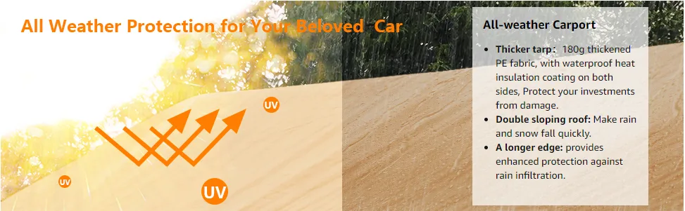 - 【Friendly reminder】During inclement weather conditions, we recommend folding up the outdoor carport as a precaution, and always clear snow promptly in winter for safety and longevity.