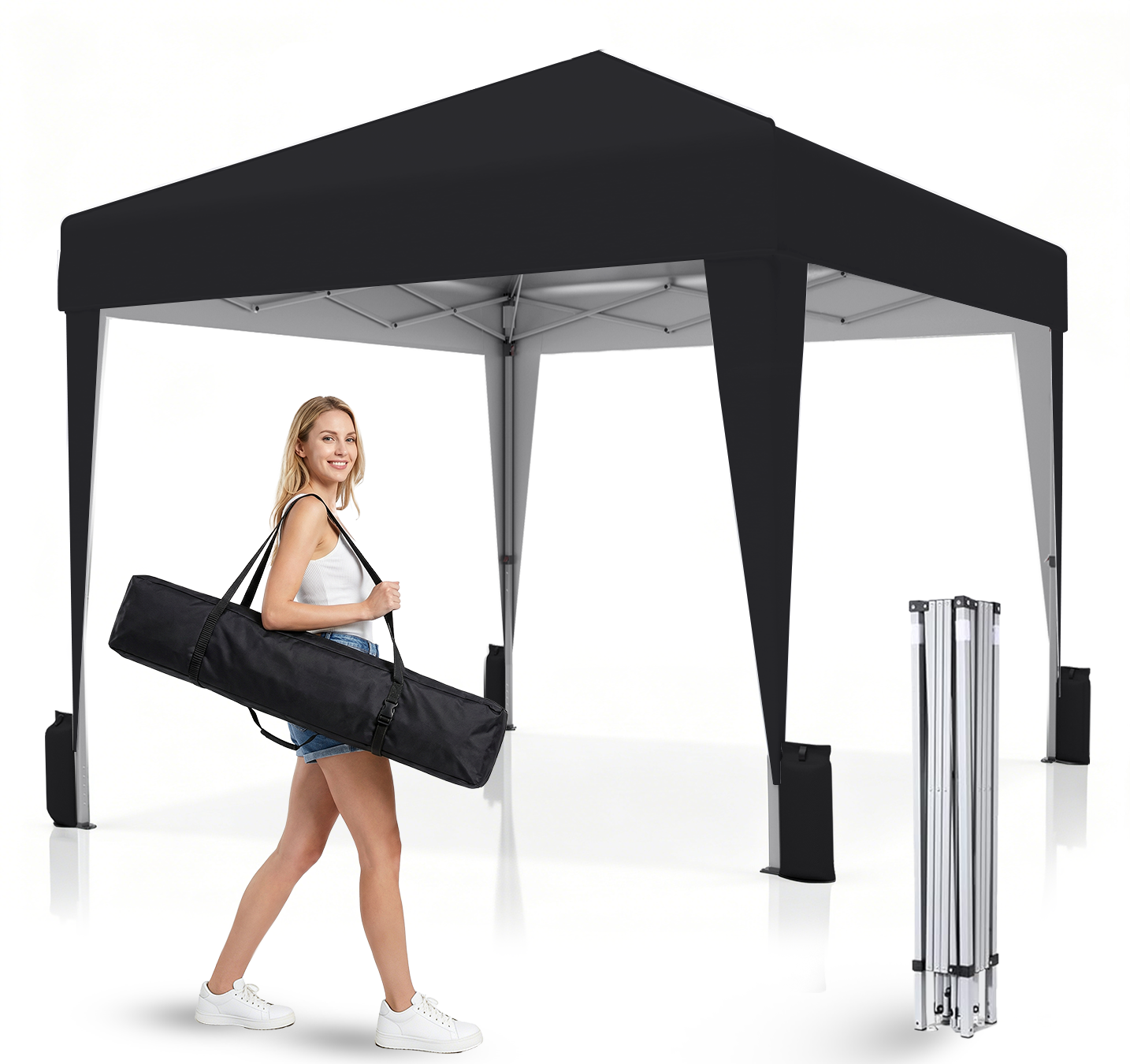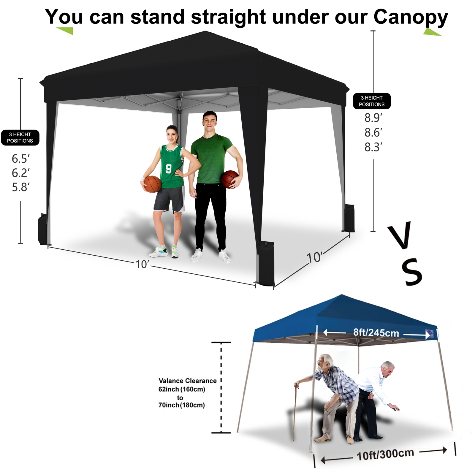 SANWAY 10x10 Pop up Canopy Tent, One-Button, Outdoor Instant Canopy Protable for Events, Camping, Parties, Vendor, Beach Tent - Black quantity