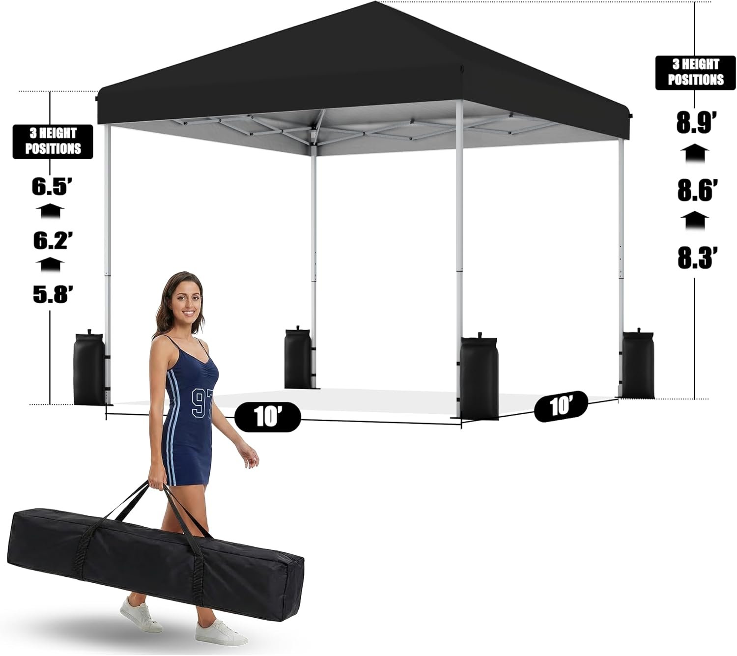 / SANWAY 10×10 Pop Up Canopy Tent, One Push Setup, Heavy Duty Portable for Beach Camping Parties with Vents – Black