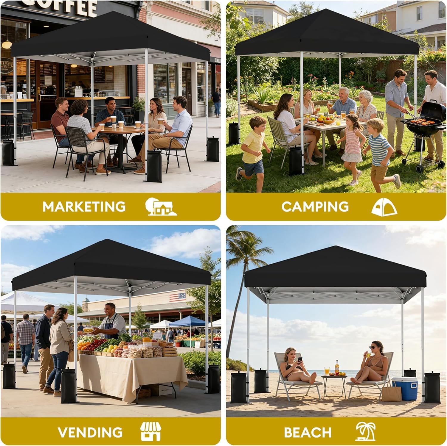 SANWAY 10x10 Pop Up Canopy Tent, One Push Setup, Heavy Duty Portable for Beach Camping Parties with Vents - Black quantity