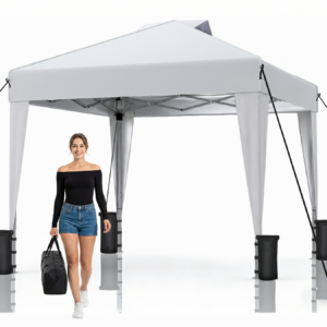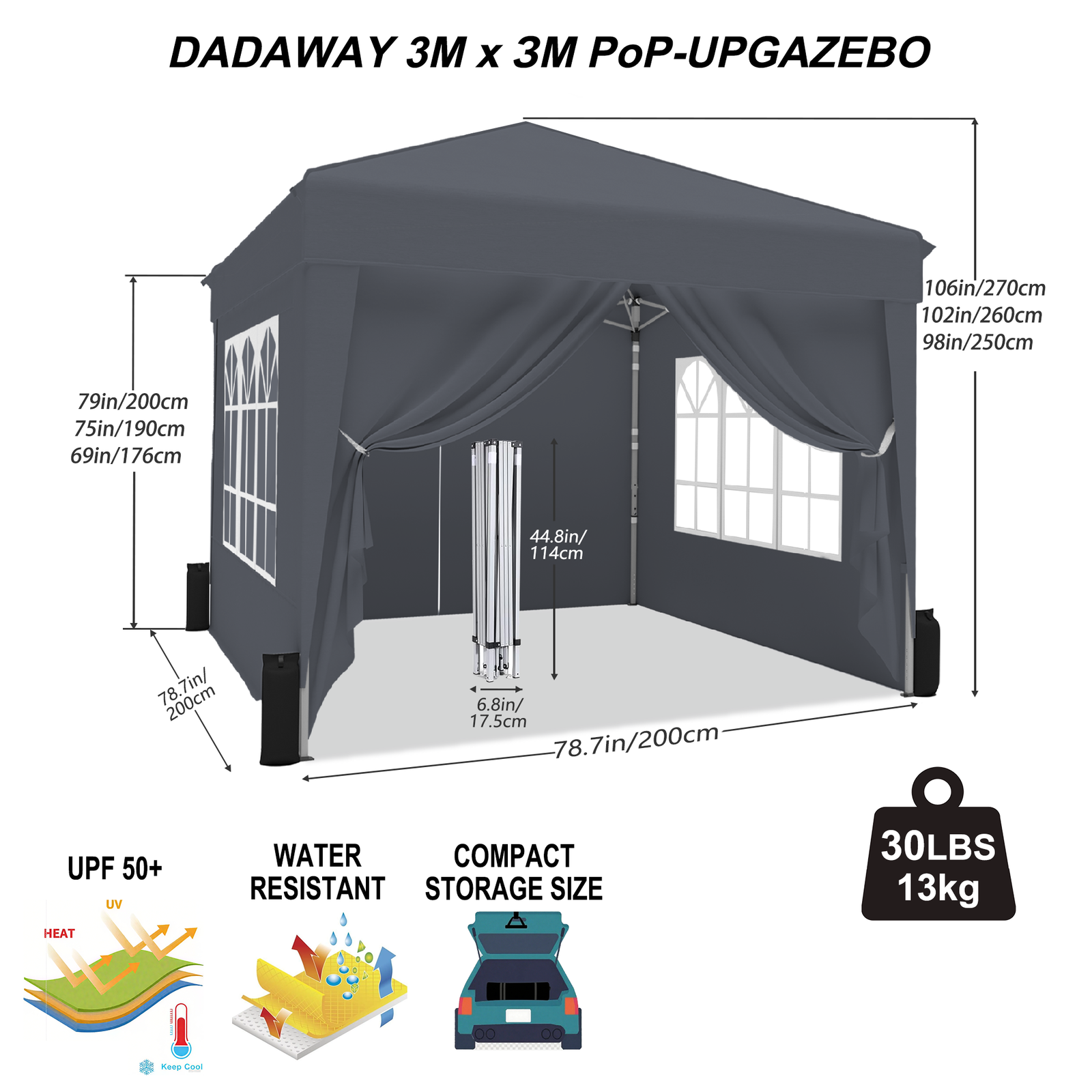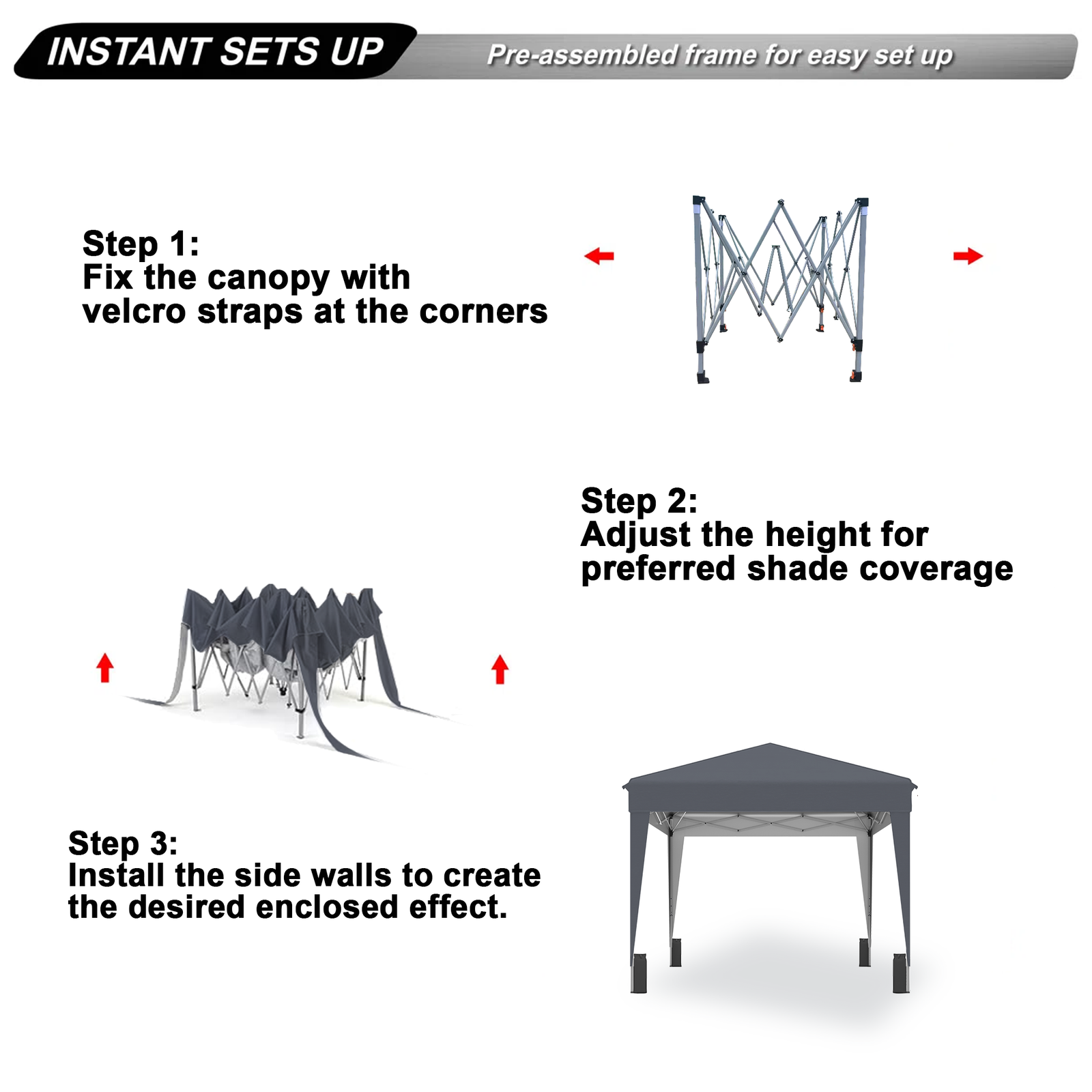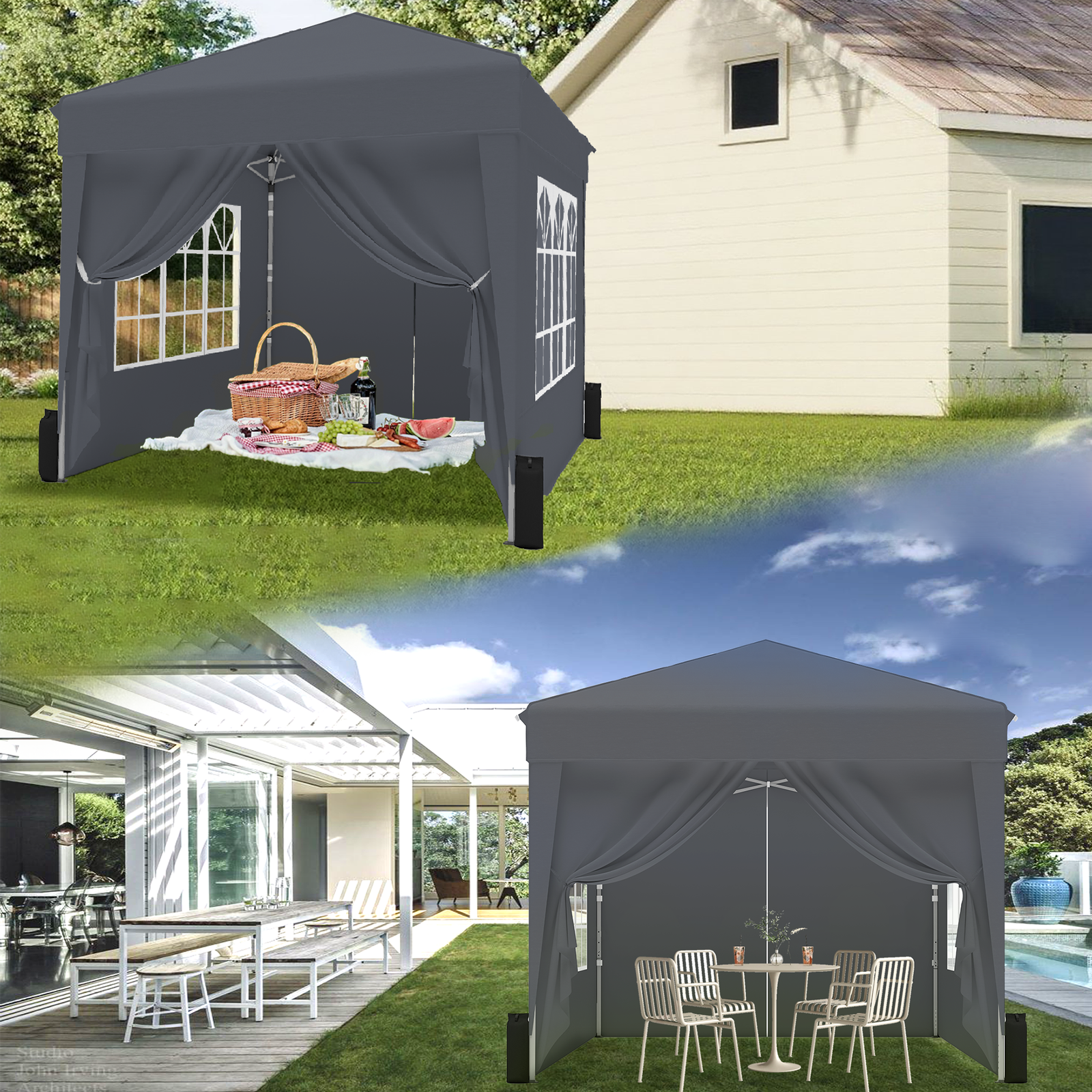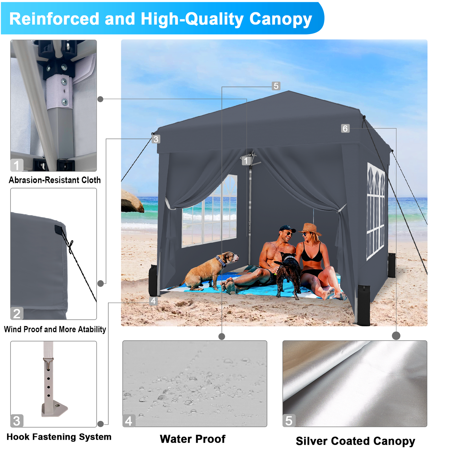 SANWAY 6.6×6.6 Pop Up Canopy Tent with Sidewalls x 4 – Easy Setup Canopy Tent, Waterproof, UV-Resistant, Portable with Carry Bag for Outdoor Events, Camping, and Backyard Parties –Gray